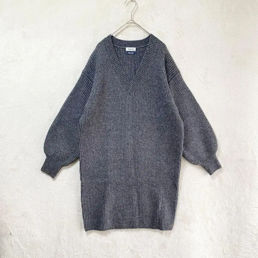 REPLAY/롱 니트 스웨터 원피스/S/V넥 루즈핏 그레이