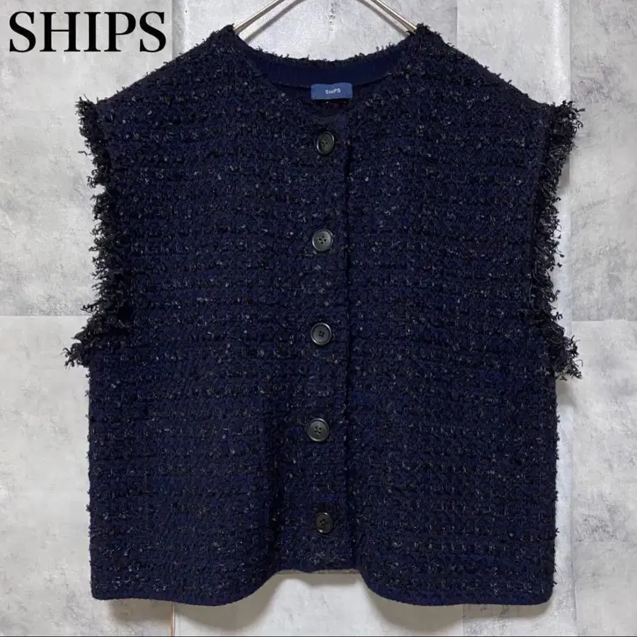 자동 번역되었어요. 원문보기프린지 엣지 네이비 트위드풍 베스트, 버튼 디자인.