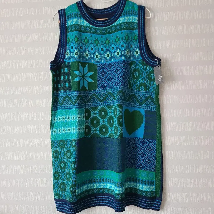 TOKUKO 슬리브리스 니트 원피스 청록색 계열