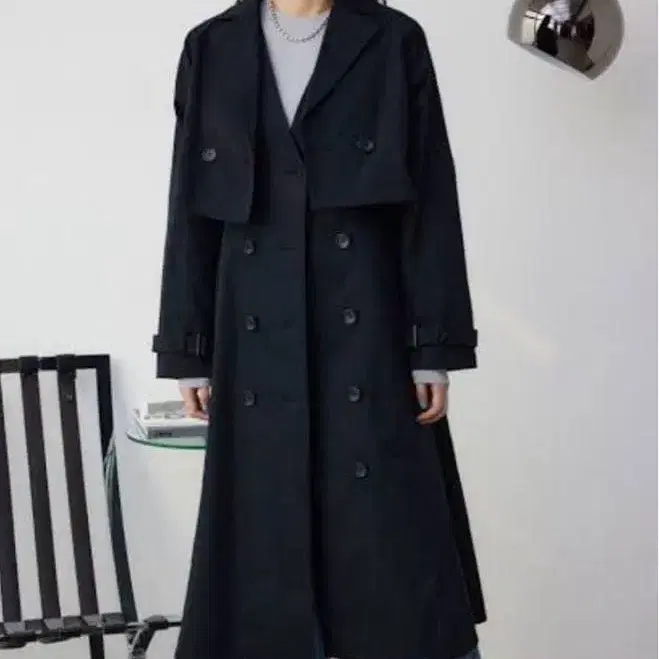 블랙 더블 브레스트 트렌치코트