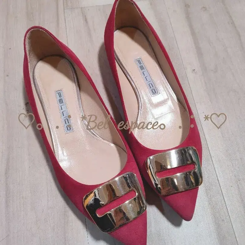 26일까지! 대특가! 펠리코 PELLICO 스웨이드 플랫 펌프스 빨간색