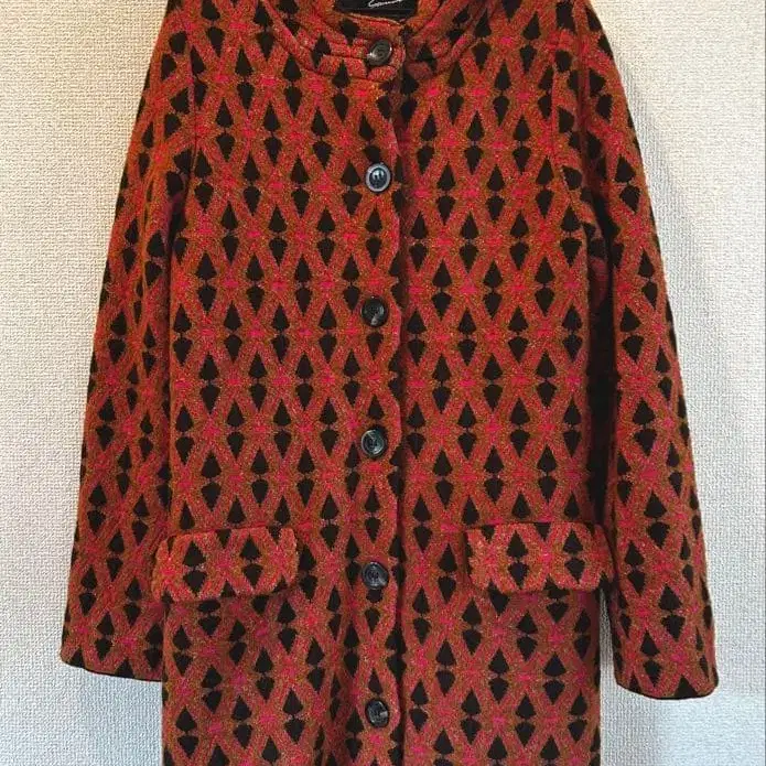 STUNNING LURE 스터링 루어 자카드 무늬 코트 후드 부착 코트 코트 올 패턴 코트 스터링 루어의 디자인성이 높은 자카드 직물 코트입니다. 차분한 브라운 x 핑크 계열의 패턴으로, 코디의 주인공이 될 한 벌. 포켓 부착 안감 있음. 사이즈: 기재 없음 ( M 상당 ) 가슴 너비: 약 45cm 기장: 약 82cm ※ 평평하게 놓은 개인 측정으로 약간의 오차는 양해 부탁드립니다. 소재 아크릴 36% 울 26% 면 24% 폴리에스테르 14% ( 안감: 폴리에스테르 100% ) ( 별도 천〈후드 부분〉: 모헤어 70%, 나일론 30% ) 상태 눈에 띄는 얼룩이나 데미지 없이, 계속 착용 가능합니다. ※ 중고품에 이해가 있는 분만 구매 부탁드립니다. 다이아몬드 패턴의 오렌지 계열 롱 코트, 후드 부착으로 따뜻한 디자인. - 색상: 오렌지 계열 - 패턴: 다이아몬드 패턴 - 소재: 불명 ( 두꺼운 원단 ) - 버튼: 2개의 버튼 - 후드: 후드 부착 - 스타일: 롱 코트 방문해 주셔서 감사합니다.