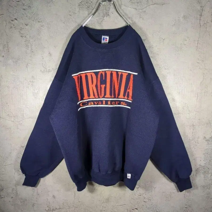 • 레어 XXL USA제 러셀 맨투맨 칼리지 로고 와이드 소매 네이비