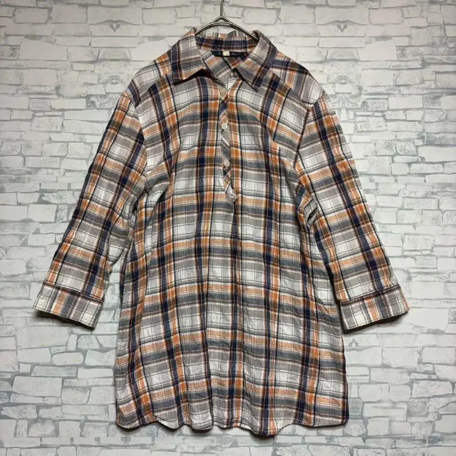 [ 카이탁 패밀리 ] 오렌지 네이비 체크 무늬 긴팔 셔츠 M 사이즈