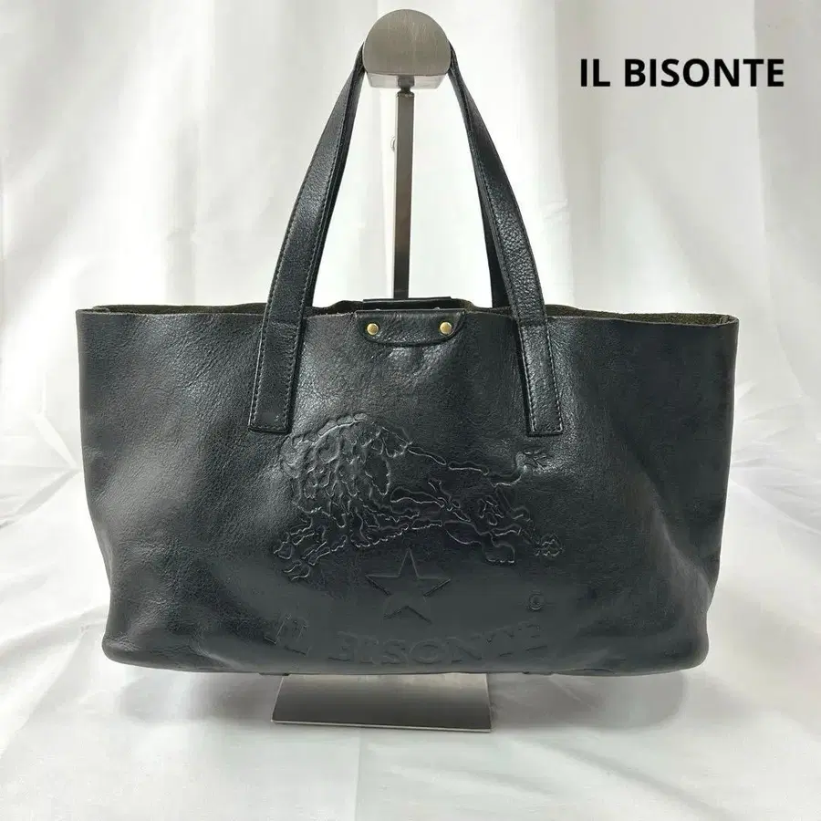 일비종떼 토트백 카프 스킨 블랙 빅 로고 엠보싱