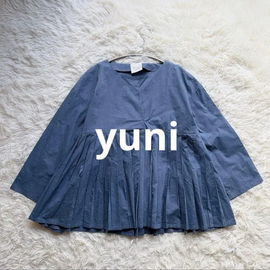 yuni 유니 코튼 플리츠 블라우스 풀오버 개더 절개 블루