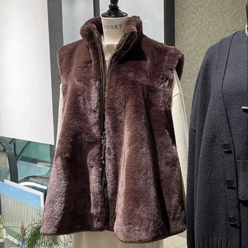 ASTRAET 아스트라트 플레어 인조 모피 베스트