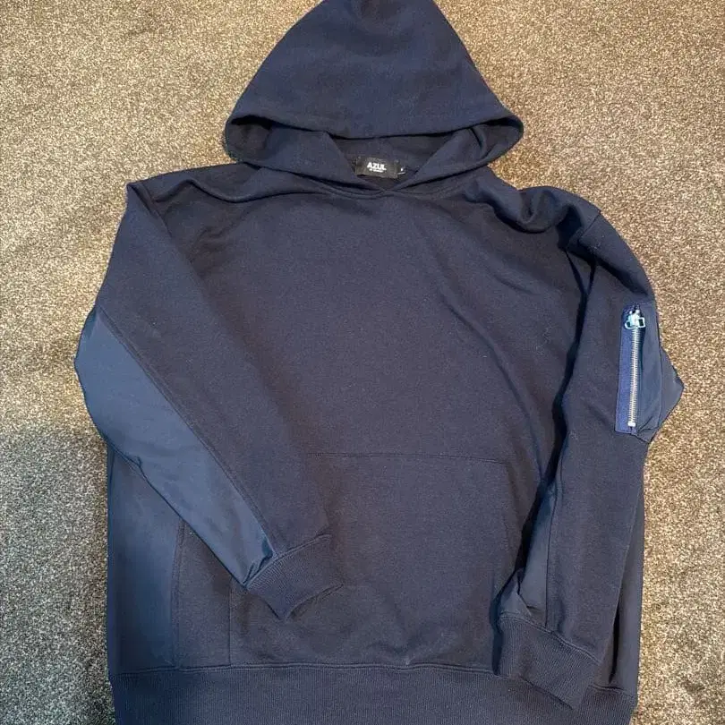 네이비 후드 부착 후드 맨투맨