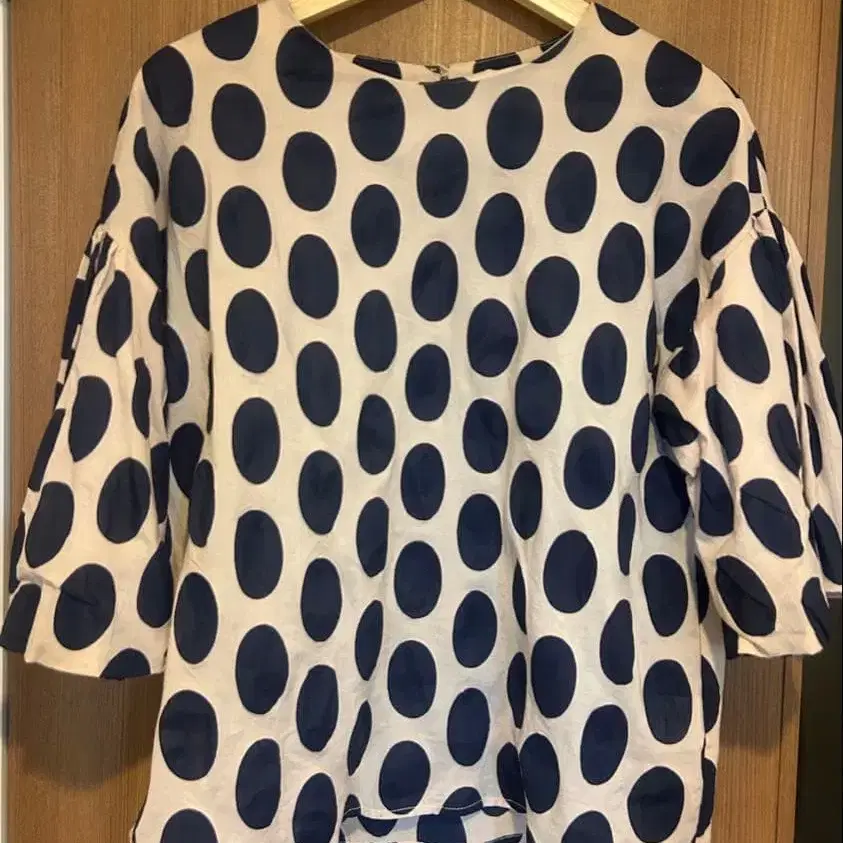 뮤맨 H 물방울 패턴 플레어 슬리브 튜닉 반팔