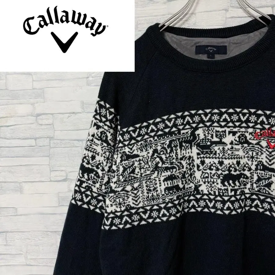 캘러웨이 니트 스웨터 풀오버 노르딕 무늬 안감 부착 L
