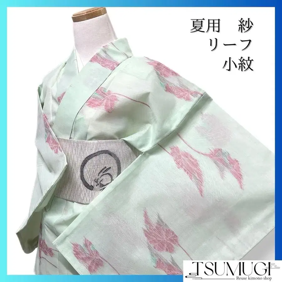 미착용 코몬 여름용 샤 리프 그린 여름 기모노 기모노 035a d