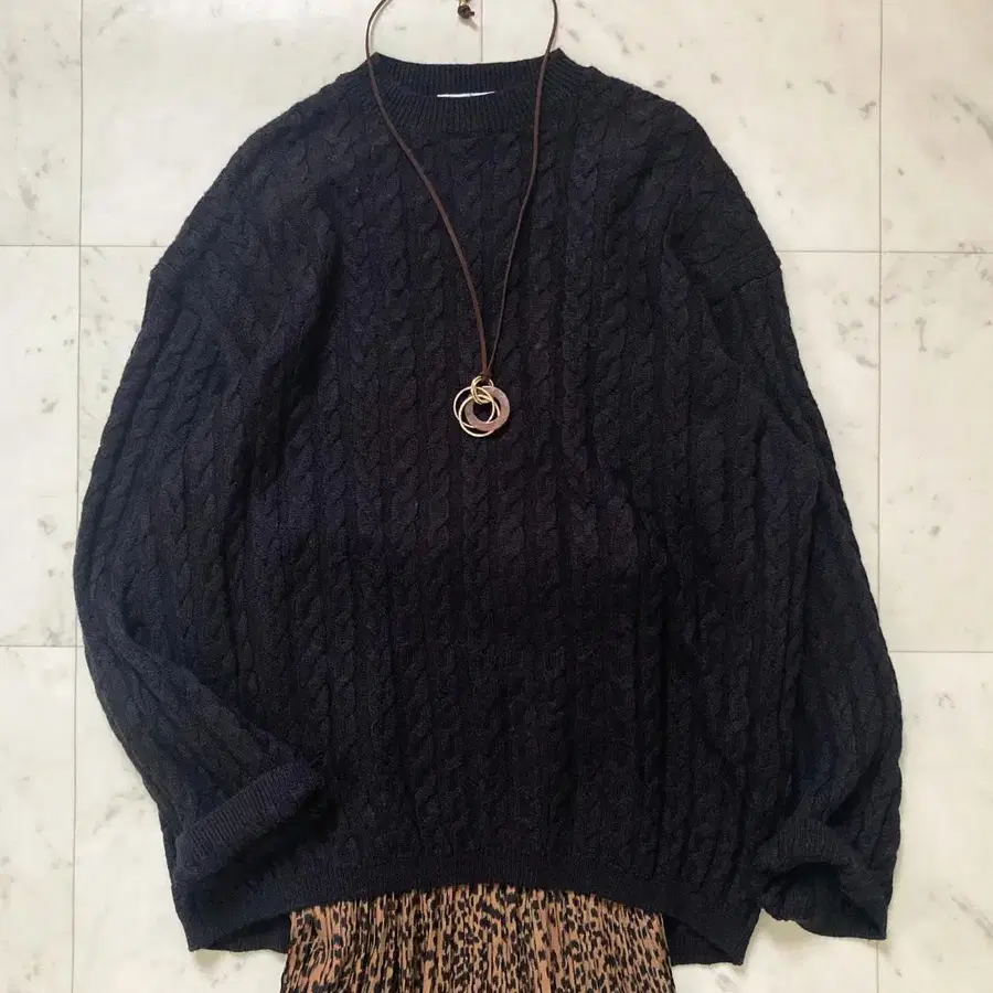 플라주 울 실크 케이블 니트 루즈핏 블랙
