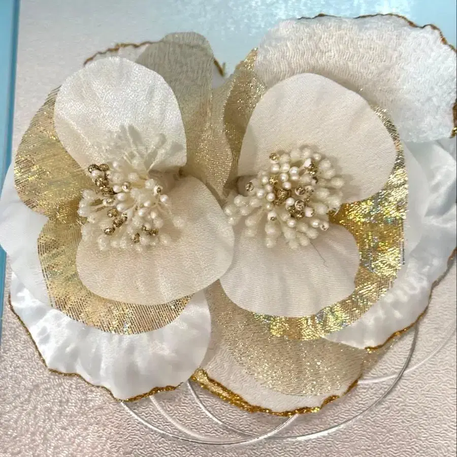 [ 새상품급 ] 성인식 사전 촬영 결혼식 머리 장식 화이트 골드 꽃