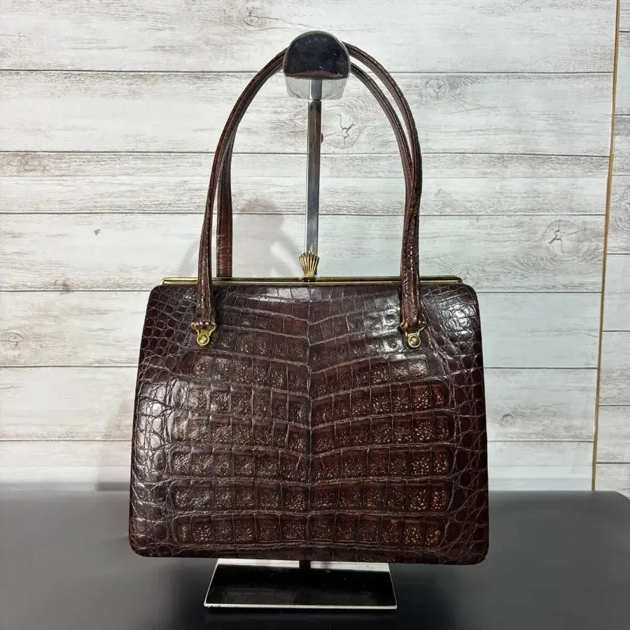 [ 빈티지 ] 핸드백 악어 엠보싱 가마구치 가죽 브라운