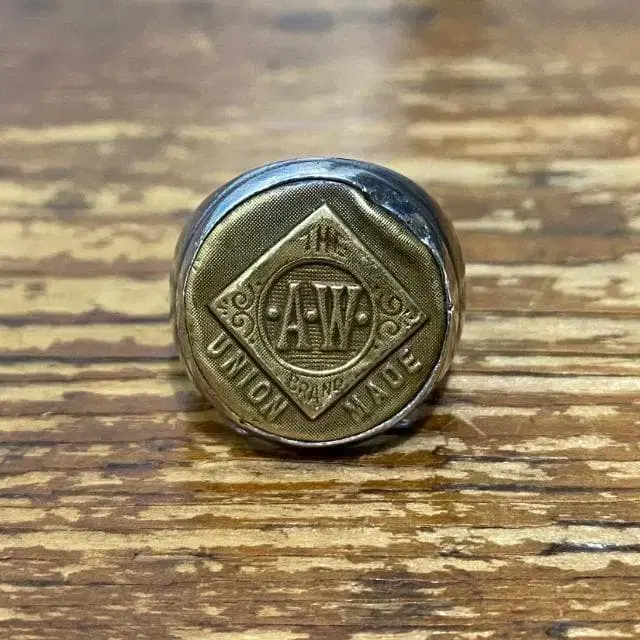 1920년대부터 1930년대에 실제로 사용되었던 커버올, 오버롤 등의 체인지 버튼을 사용한 분위기 있는 반지입니다. 심플하면서도 두께감 있는 볼륨감 있는 마감입니다. 버튼은 레어 아이템인 1900년대 초반의 THE A W BRAND UNION MADE 체인지 버튼을 사용했습니다. 빈티지 체인지 버튼이므로 모두 하나뿐인 상품입니다. 흔하지 않은 상품입니다. 찾으시는 분은 꼭 득템하세요!