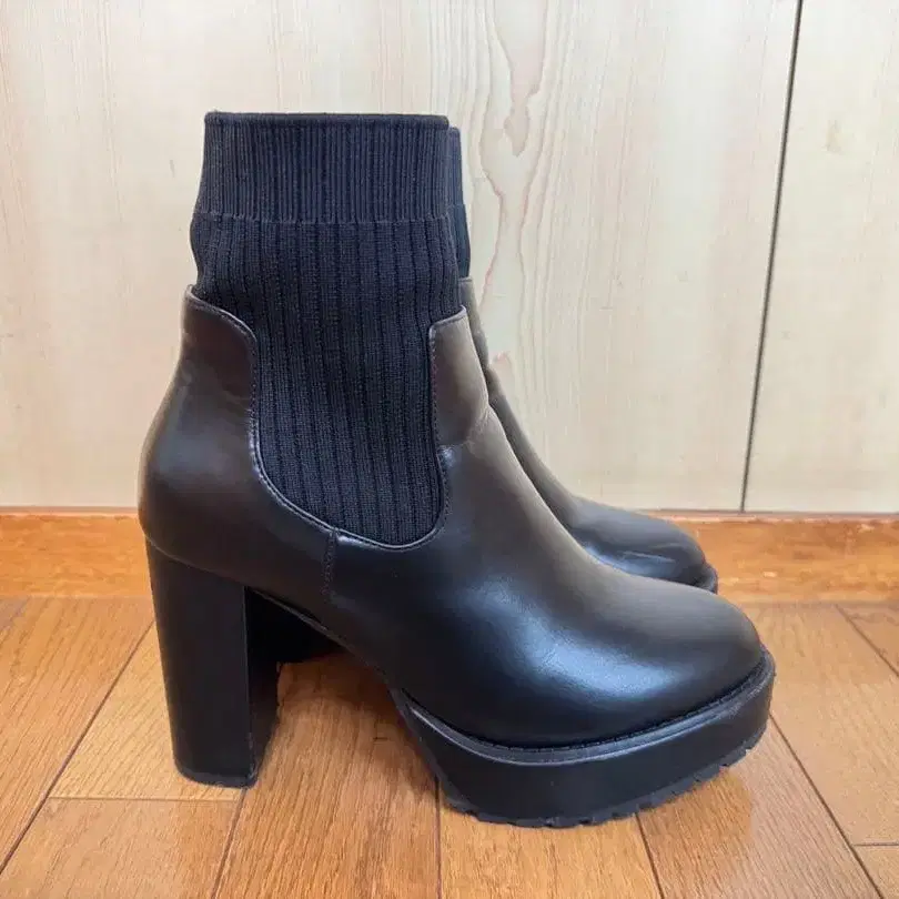AZUL 블랙 가죽 니트 힐 부츠
