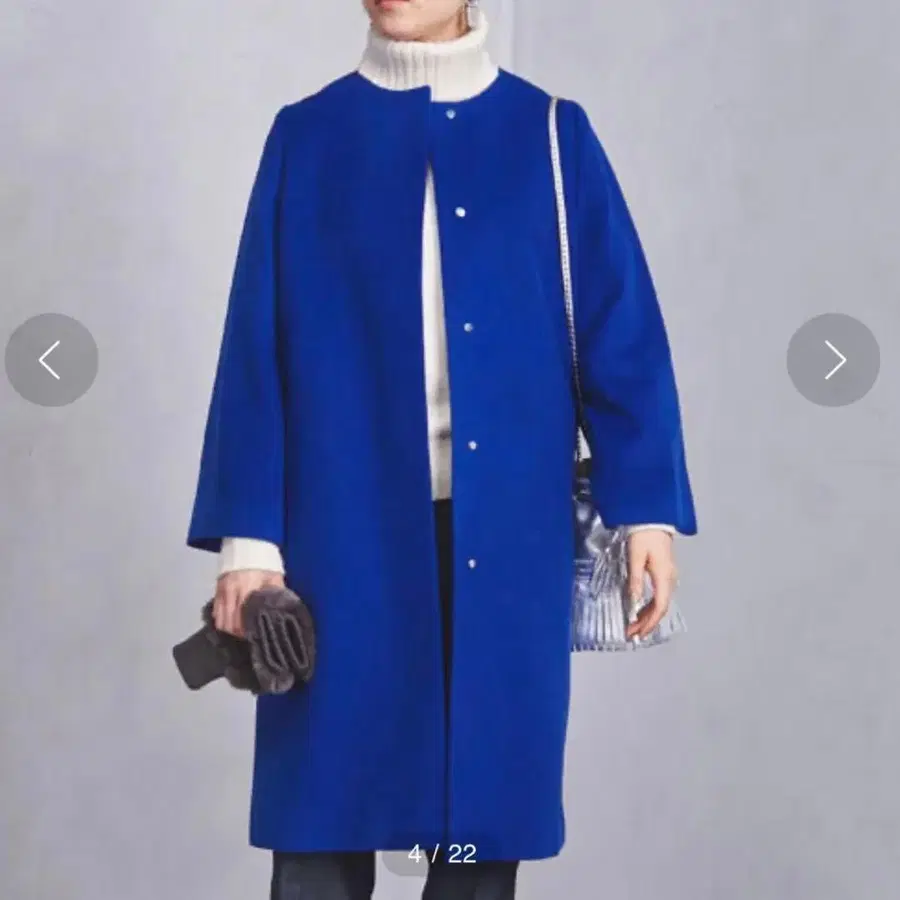 유나이티드 애로우즈 비버 노카라 벨 슬리브 코트 파랑 울