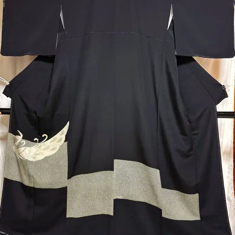 블랙 토메소데, 미사용, 깃털 은색 자수, 순수 실크 No.613F