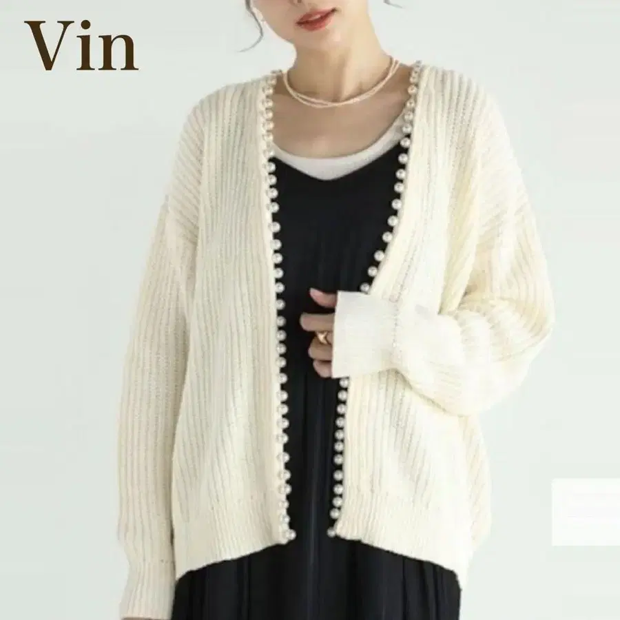 야마다야 Vin 펄 트리밍 니트 가디건 화이트