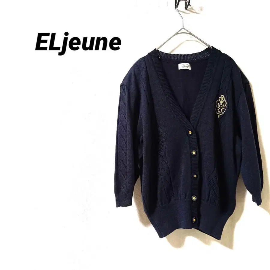 3760K 엘르 가디건 네이비 V넥 겉옷 7부 소매 레트로 M