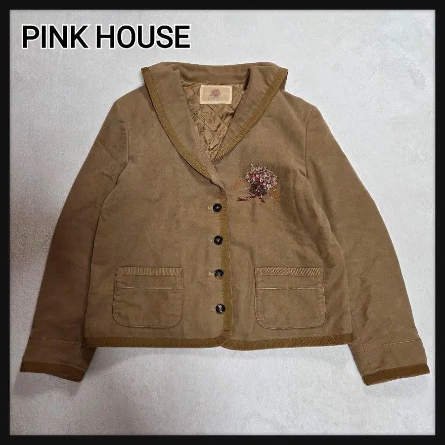 PINKHOUSE(핑크하우스)의 세일러 카라 자켓입니다. 꽃무늬 자수 패딩 자켓 브라운 FREESIZE