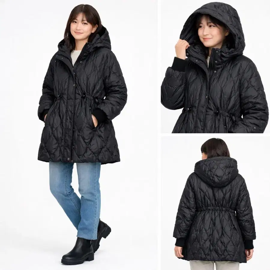 루일 에 부티크 퀼팅 코트 블랙 S~M 후드 허리 조절