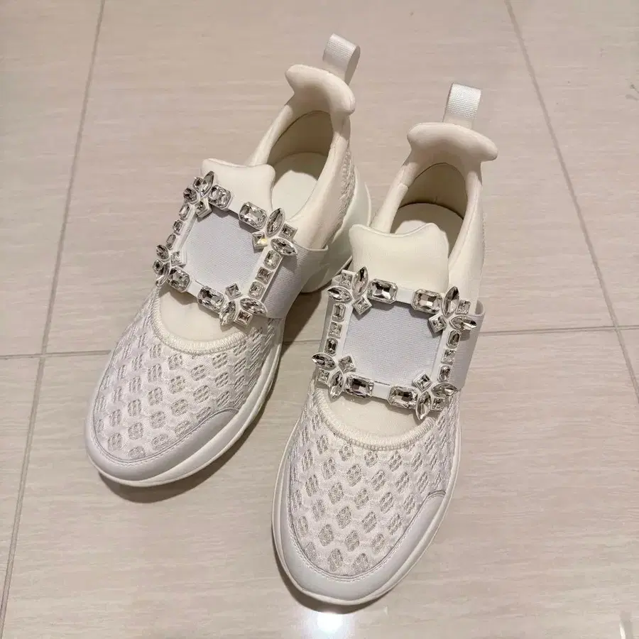 통굽 스니커즈 화이트 비쥬 장식 24cm 한국 스타일 깔끔한 슬립온
