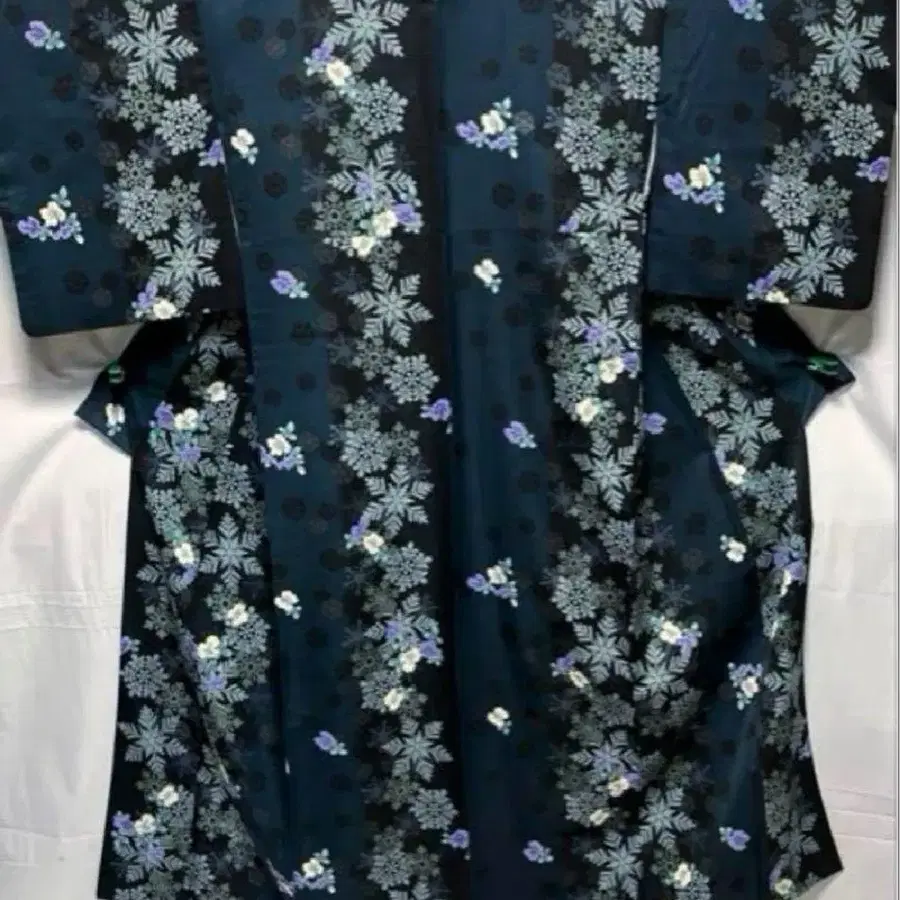 워셔블 기모노 이중 기모노 코몬 H.L 네이비 바탕에 눈꽃 무늬