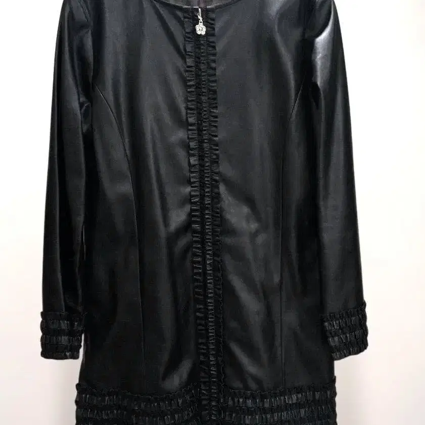 GALLERY VISCONTI 블랙 가죽 롱 자켓