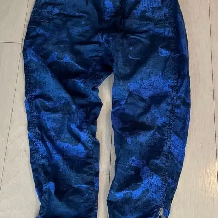 블루 계열 카모 패턴 조거 팬츠