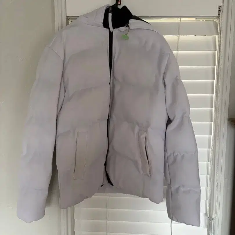 화이트 후드 부착 다운 자켓