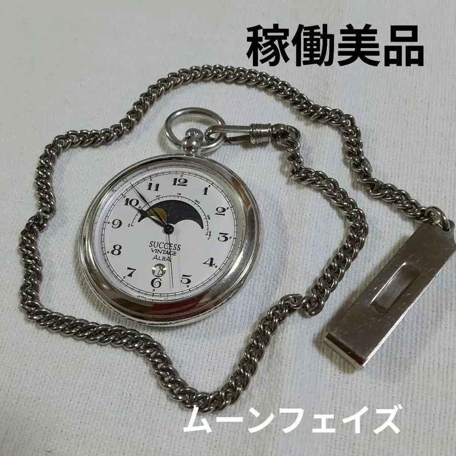 ALBA SUCCESS VINTAGE 회중시계 문페이즈 새상품급 작동
