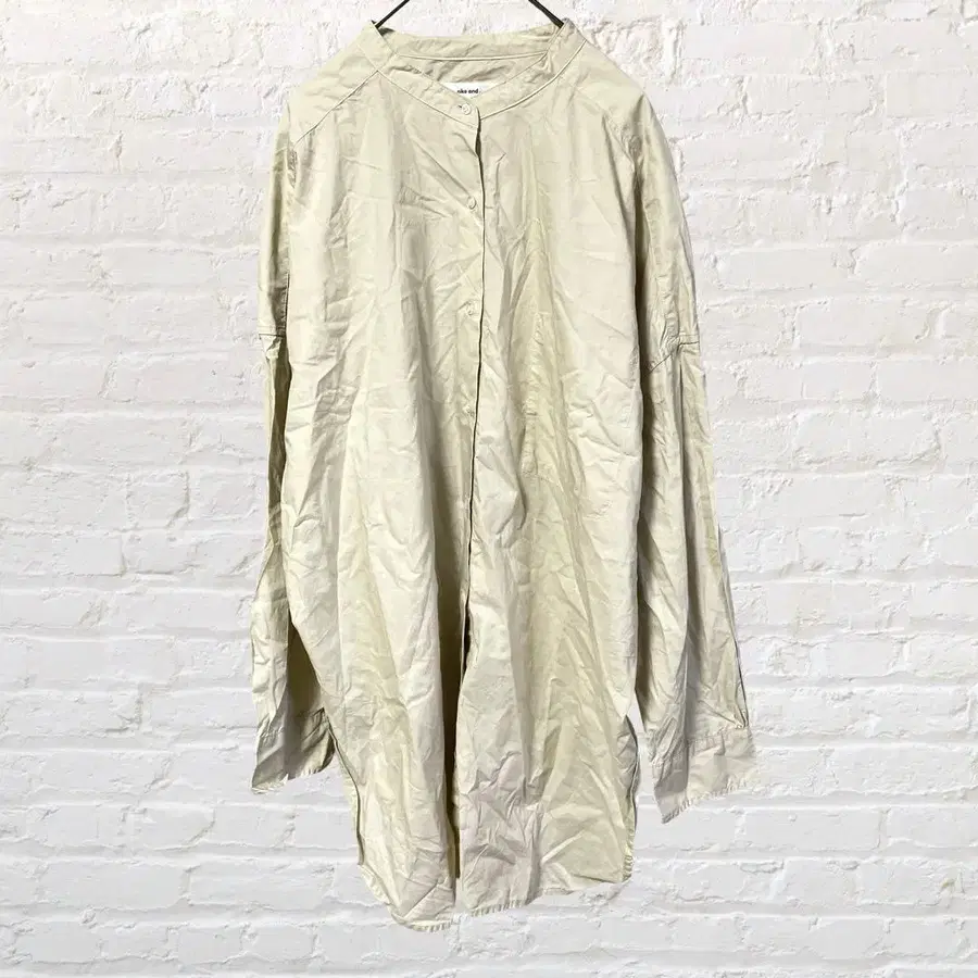 12112 니코앤드 코튼 노카라 셔츠 L 튜닉 베이지 구제 의류