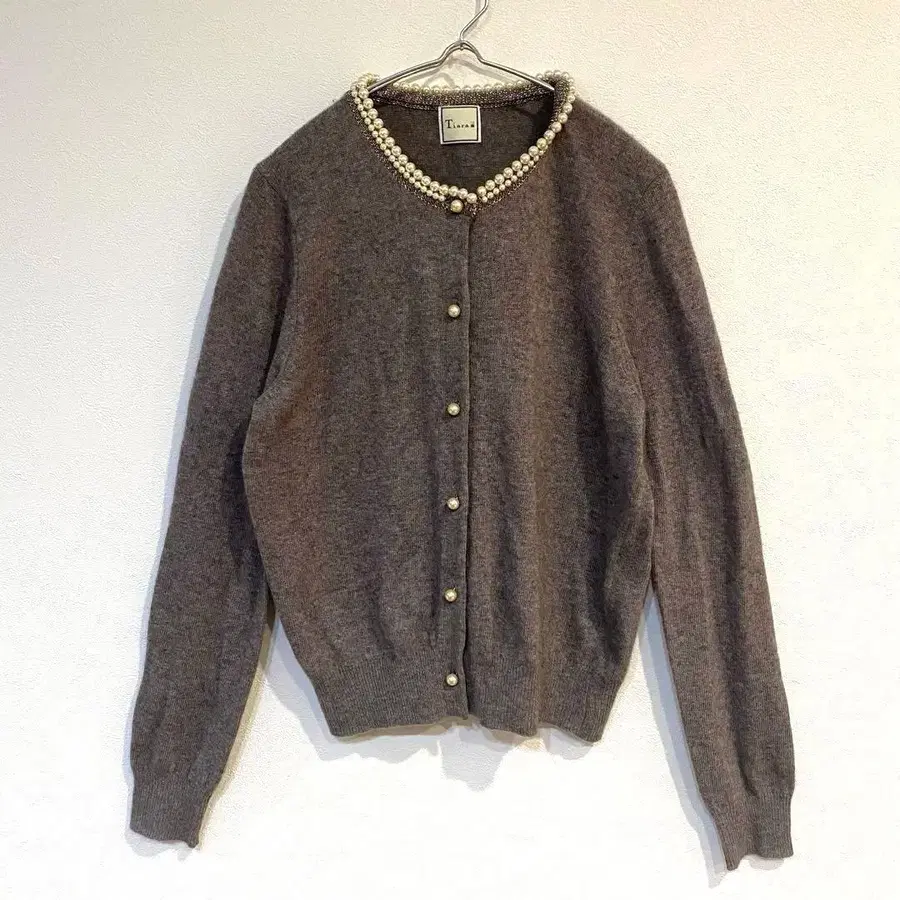 [티아라] 니트 가디건 목 진주 장식 진주 풀 버튼 울 혼방 F