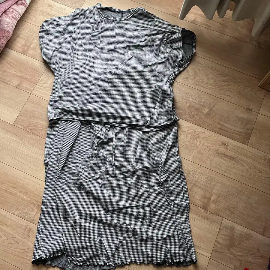 데셍 드 모드 깅엄 체크 셋업 반팔