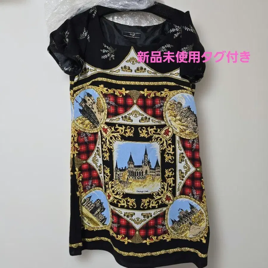 새상품 스윙 반팔 무릎 기장 원피스 스카프 패턴