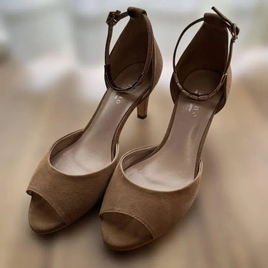 carino 24.0 베이지 스웨이드 오픈토 하이힐