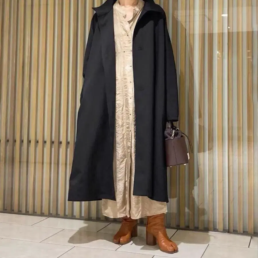 CABaN 울 개버딘 스탠드 카라 코트 블랙 S 사이즈