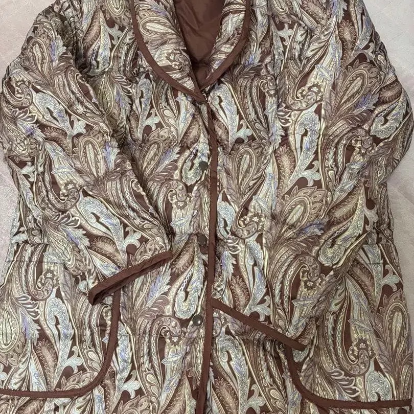 미사용 다운 페더 페이즐리 무늬 가운 겉옷 와인 컬러 브라운