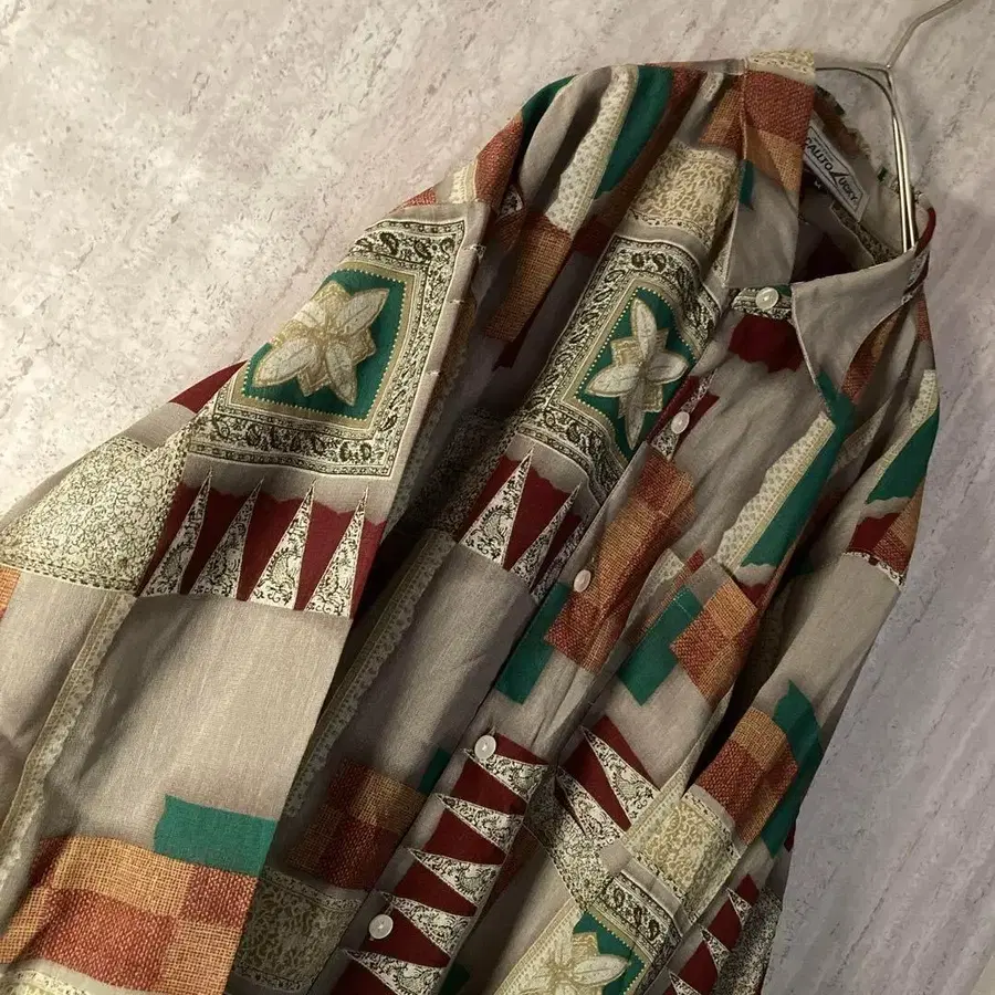 빈티지 남성용 셔츠 올 패턴 폴리 셔츠 유럽풍 그레이 어스 컬러