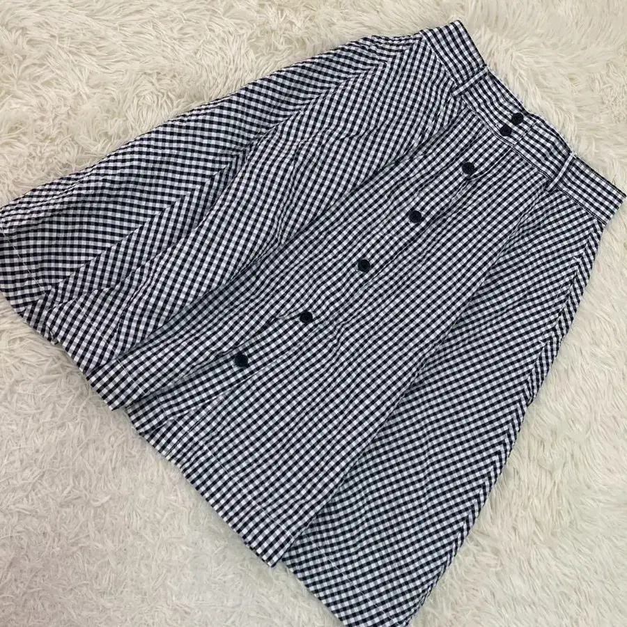 BROOKS BROTHERS 깅엄 체크 스커트 네이비 6 앞 버튼