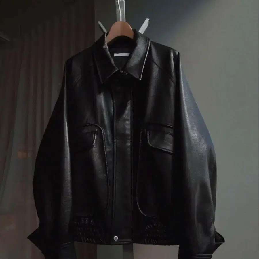 인조 가죽 플라이트 블루종