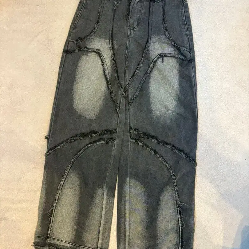 새상품급 그레이 와이드 데님 프린지 BUYMA