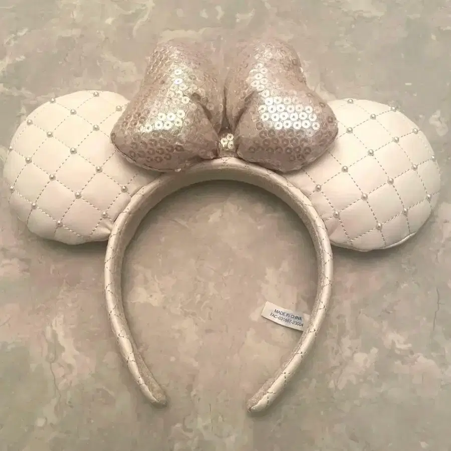 새상품급 디즈니 미니 화이트 머리띠 스팽글 펄 장식