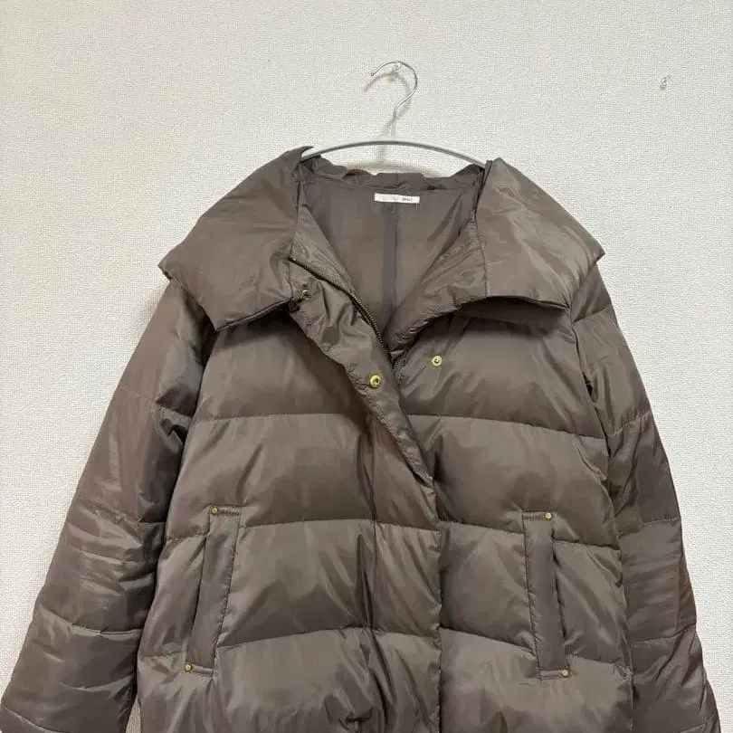 브라운 다운 자켓 후드 부착
