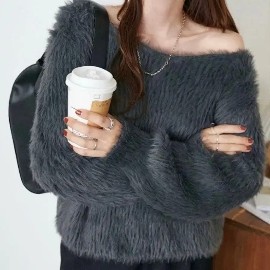 퍼 느낌 그레이 니트 스웨터 프리 사이즈