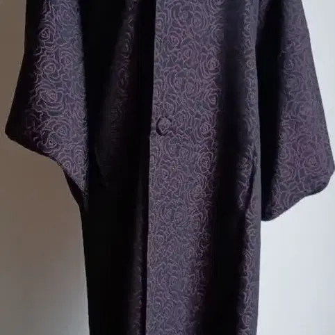 블랙과 보라색 꽃무늬 치요다 카라 와나 코트 기장 122cm L18