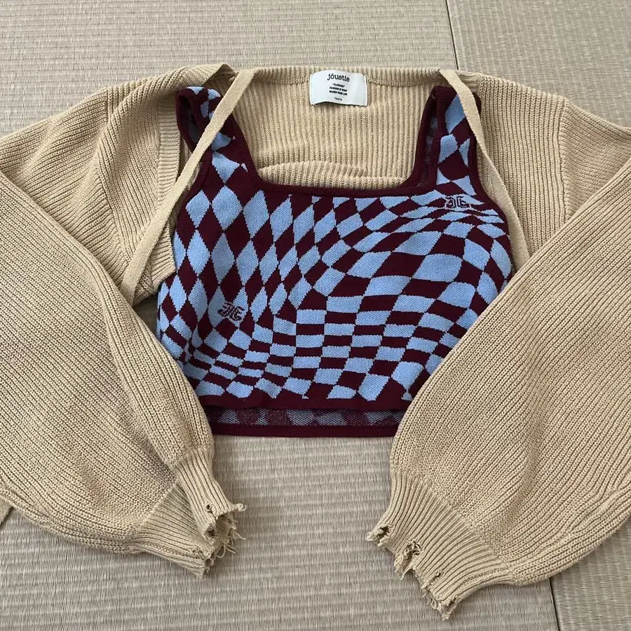 jouetie 체크 무늬 크롭 니트 M 사이즈