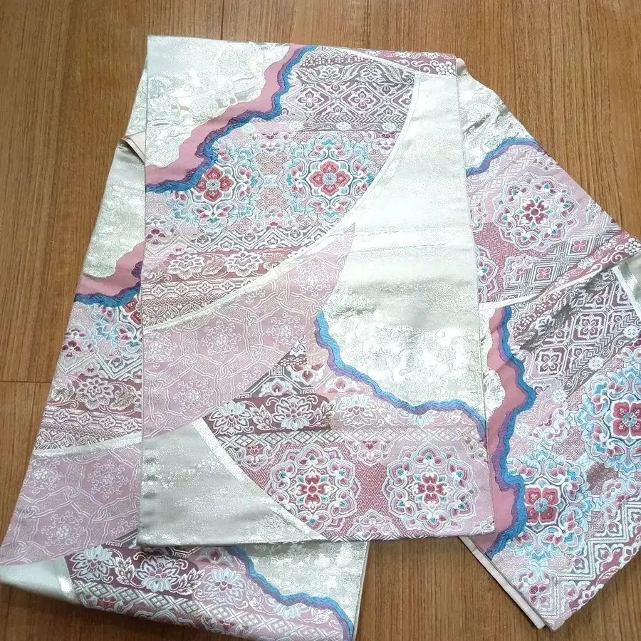 순수 실크 6통 후쿠로 오비 꽃무늬 자수