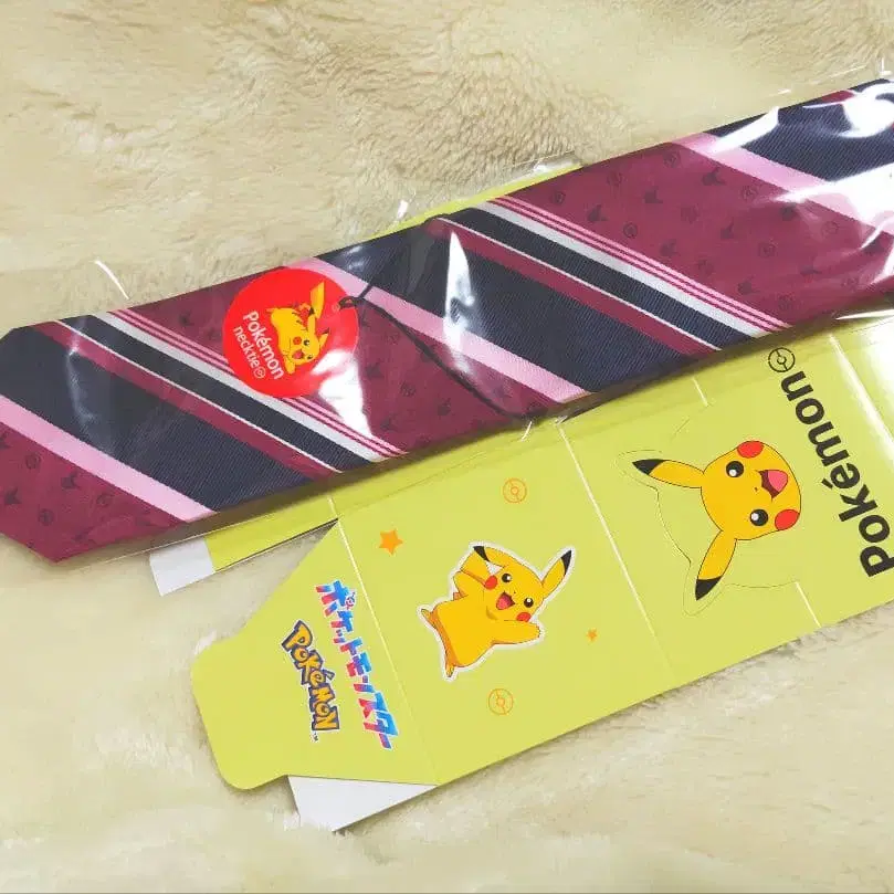 포켓몬 스트라이프 넥타이 피카츄 크림슨 컬러 핑크